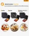 - 3-in-1 Multifunction เพลทถอดเปลี่ยนได้ถึง 3 แบบ (วาฟเฟิล / แซนด์วิช / ย่างกระทะแบนสำหรับทอดไข่หรือเบคอน)