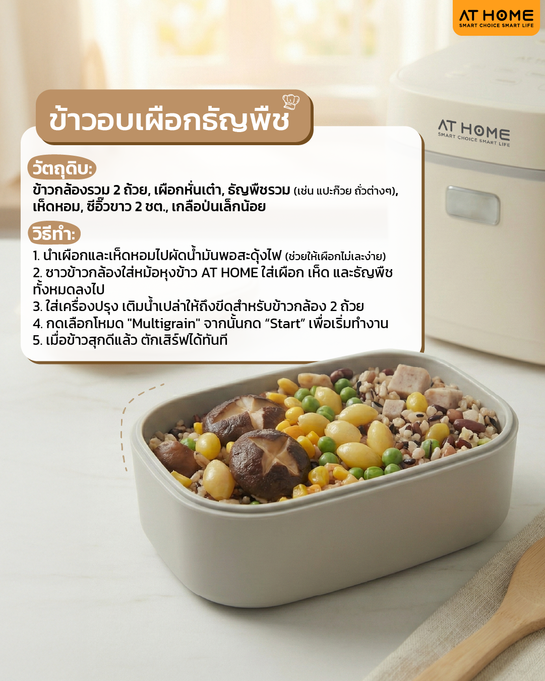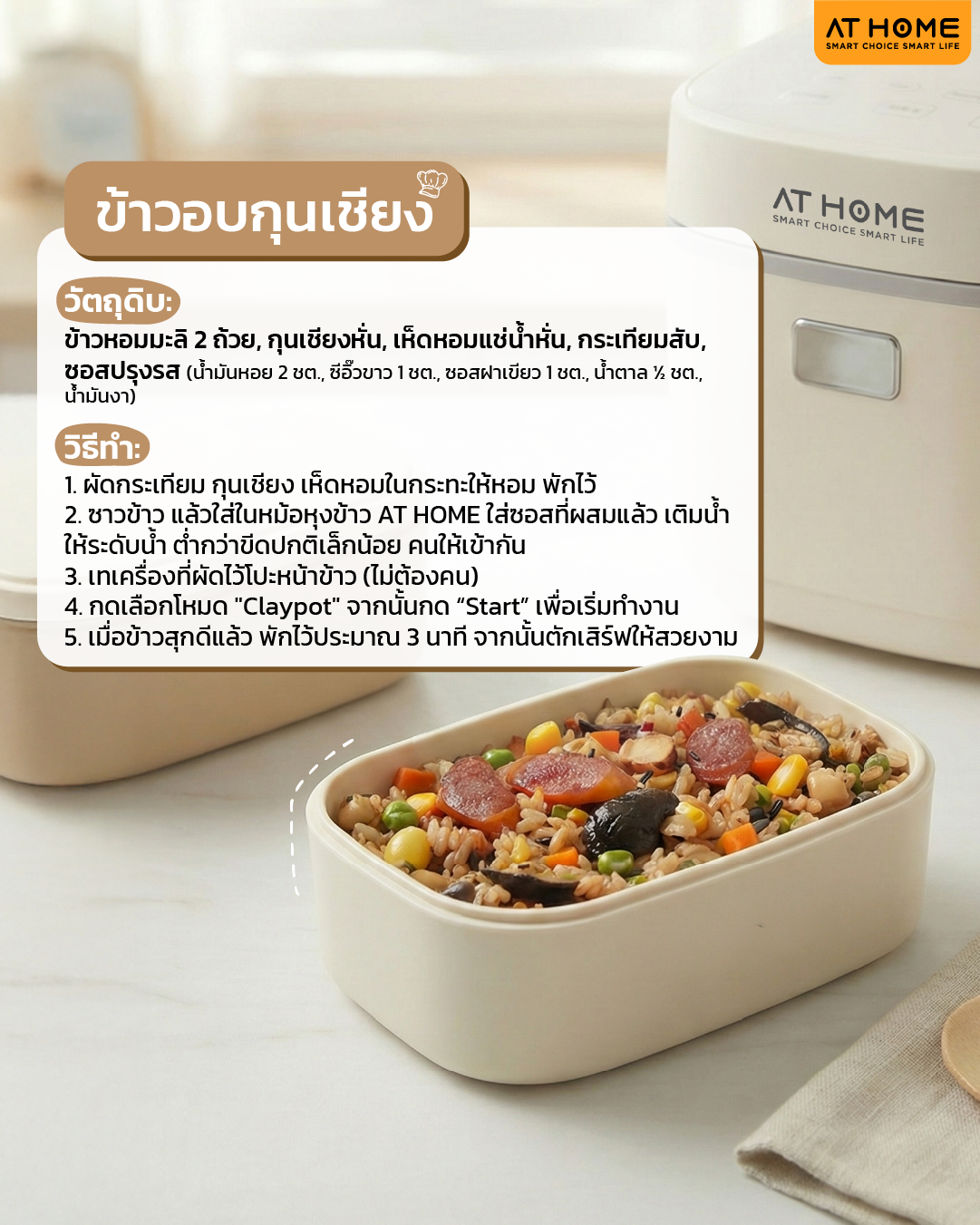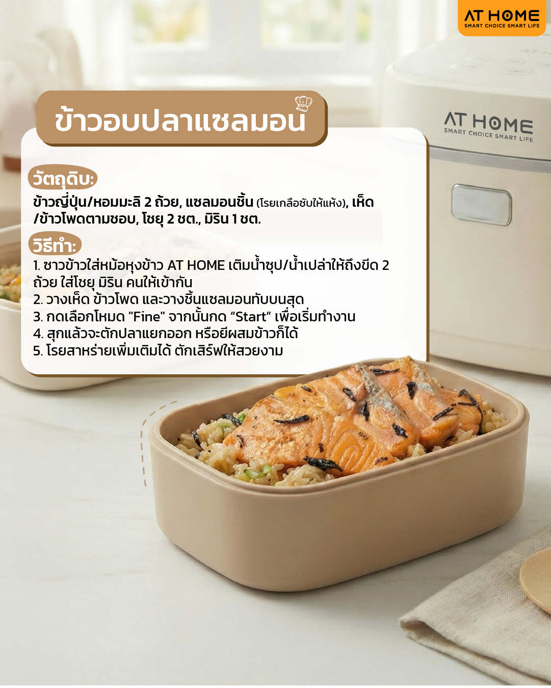 แค่โยนทุกอย่างลงในหม้อหุงข้าวดิจิทัล At Home ใบนี้ กดปุ่มแล้วไปอาบน้ำรอได้เลย อร่อยครบจบในหม้อเดียว จะมีเมนูอะไรเด็ดบ้าง? เลื่อนดูได้เลยค่ะ!